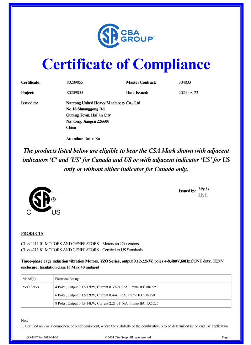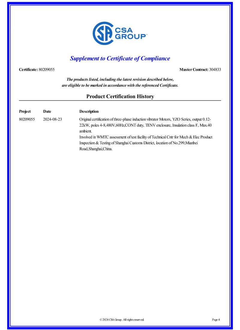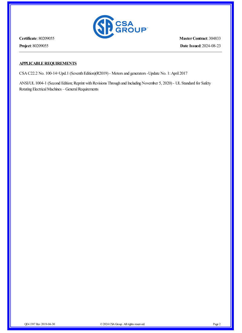 電機(jī)CSA認(rèn)證證書