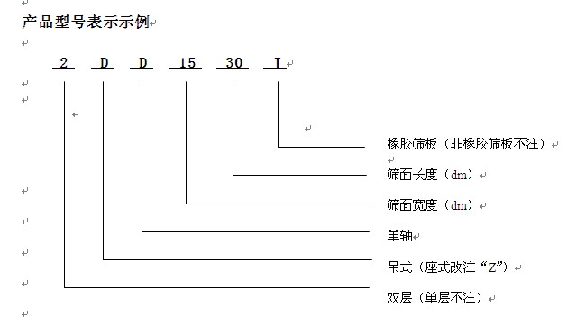 5. 在選用時,如有改變篩面傾角要求,對于座式篩可另行設計,對于吊式篩可由用戶通過調整吊掛裝置的鋼絲繩長度來實現。
